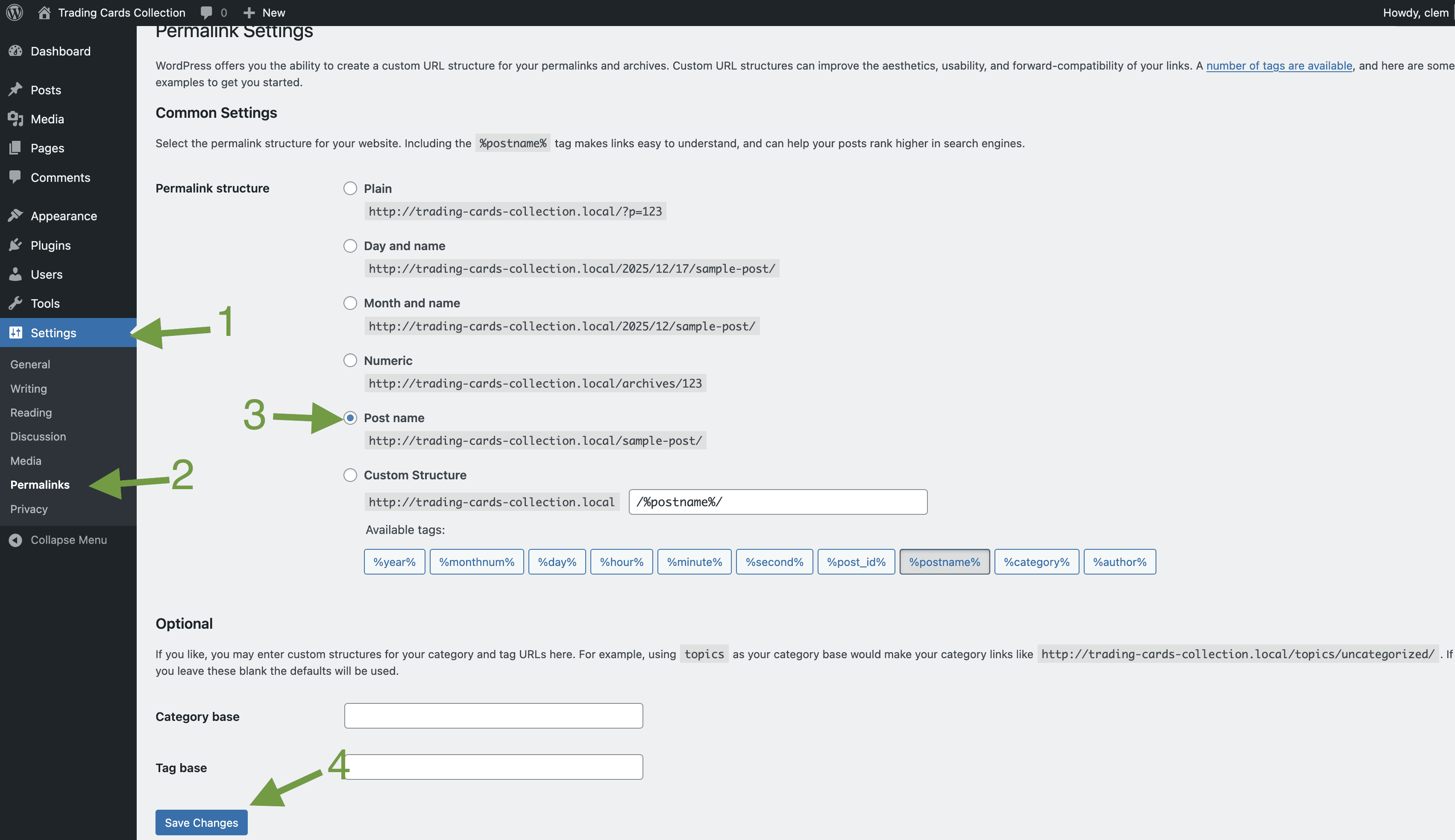 Change "Plain" to "Post name" and click Save