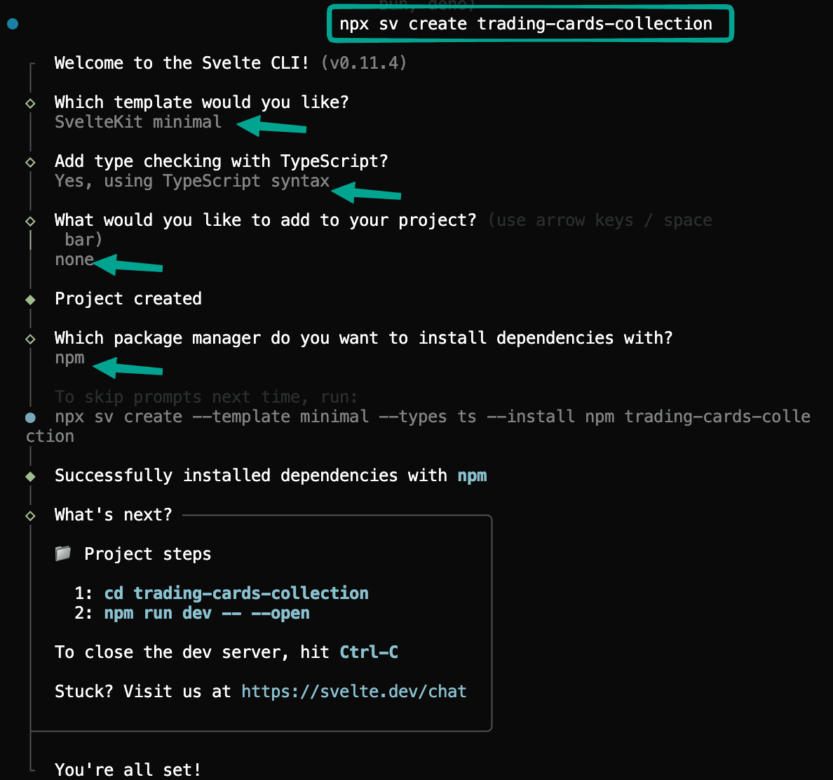 This command creates a new SvelteKit project.